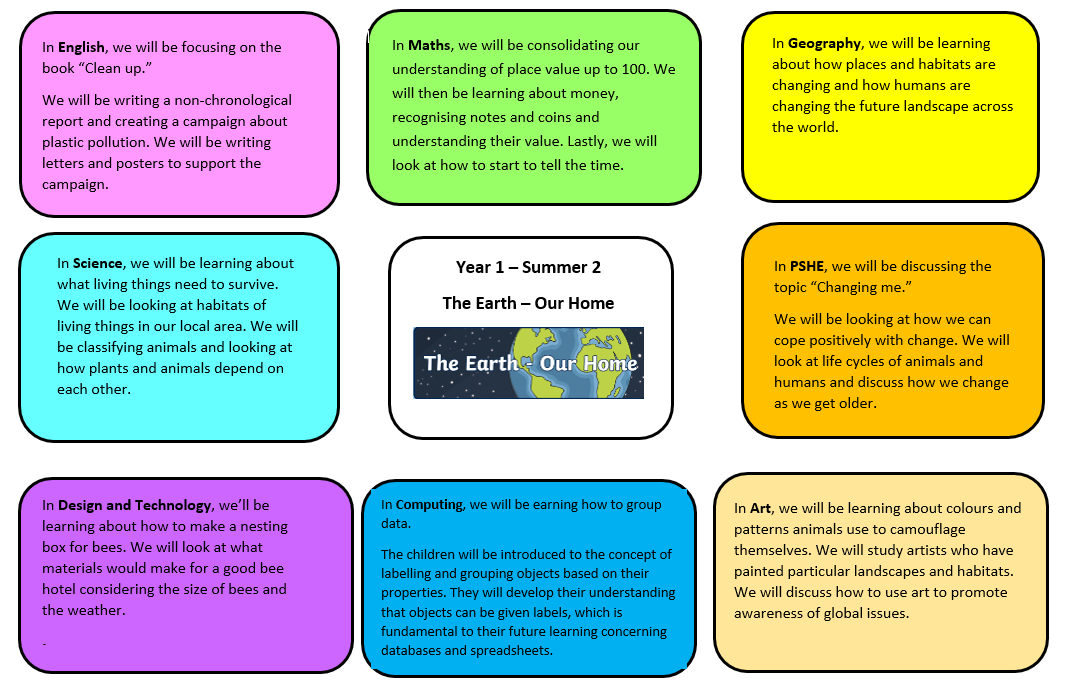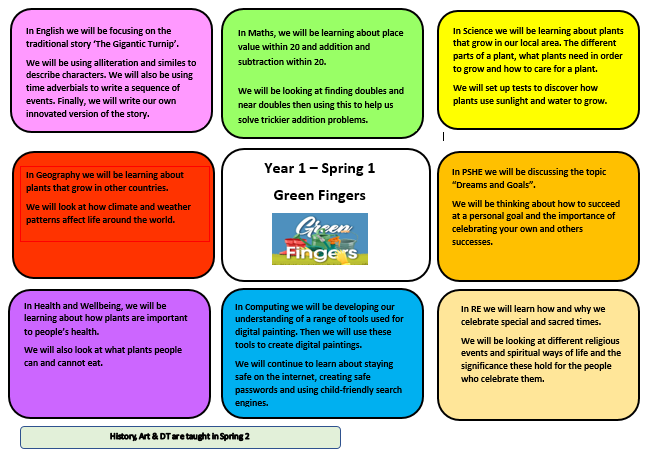 Each half term a topic overview is shared with parents so they can see the learning that is planned across the curriculum for that half term.